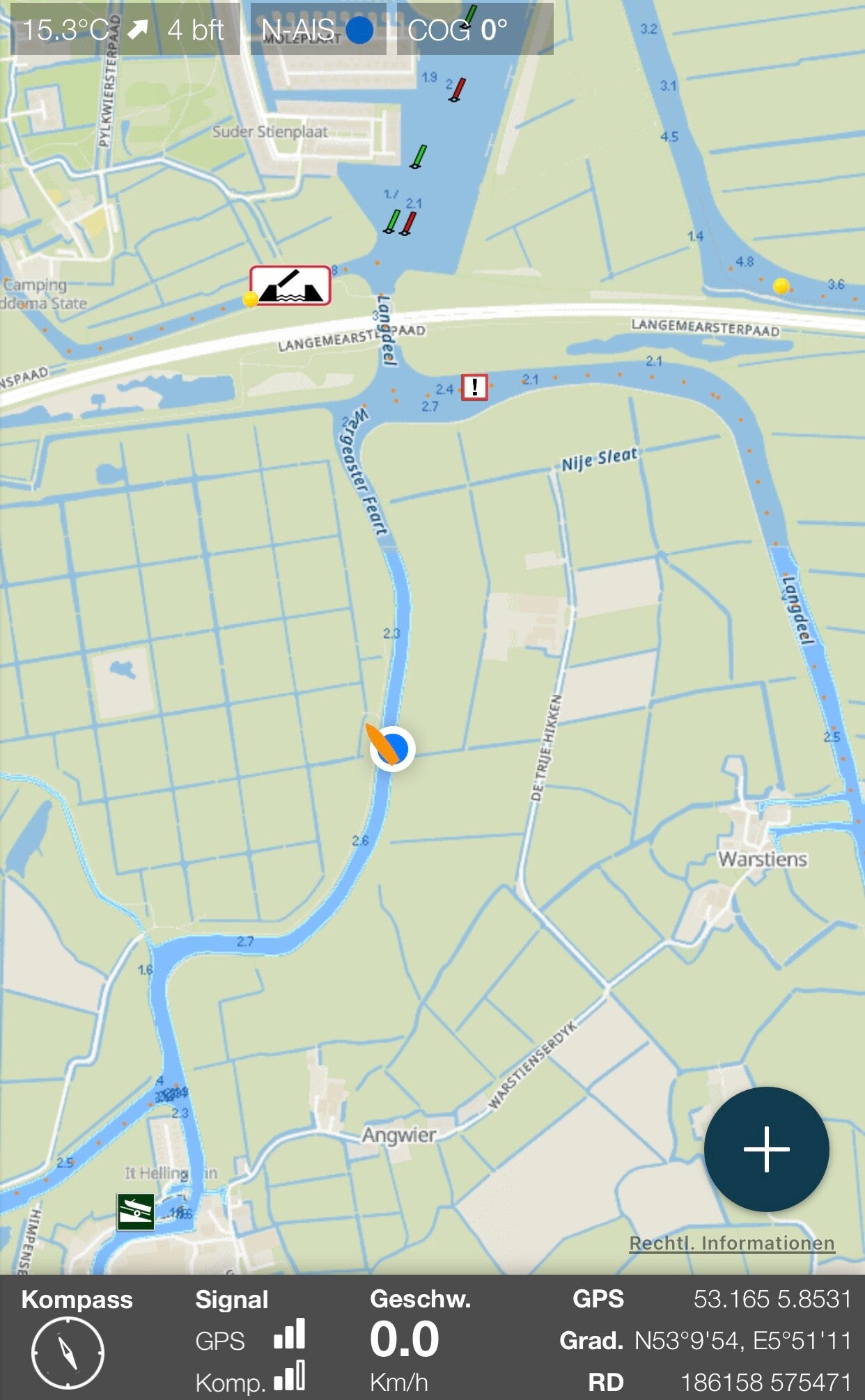 Wir sind an diesem Tag vormittags gegen 10:30 von unserem Liegeplatz losgefahren. Ziel war der "Rufus Point", ein Ausflugslokal 🍽 im Noarder Alde Wei Kanal zwischen Sneekermeer und Langwarder Wielen. Auf dem Weg durch die Kanäle hatten wir es nicht nur mit kreuzenden Segeljollen ⛵️ (vermutlich eine Bootsschule) zu tun, sondern auch mit einem kreuzenden Reh 🦌, welches quer durch den Kanal schwamm. Den "Rufus Point" passierten wir gegen 13:26. Aufgrund nicht optimalem Wetter sind wir zum Tjeukemeer weiter gefahren. Unterwegs haben wir 2 Rufknopf-Brücken passiert.